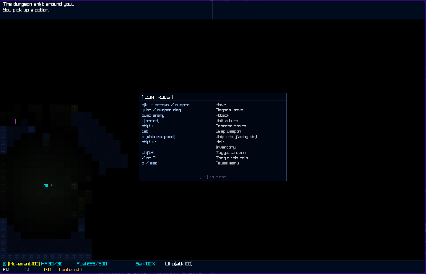 The ranged whip costing 20TU more per tile e.g. 160TU at 3 tiles (4 if you get the passive later) actually worked out quite well even tho i wasn't able to get timing systems for all entities quite how i wanted them. I also just doubled potion spawns at the very end as the clock was beating me and i wanted the game to at least be beatable. its technically complete i just marked it incomplete since its not where i wanted it